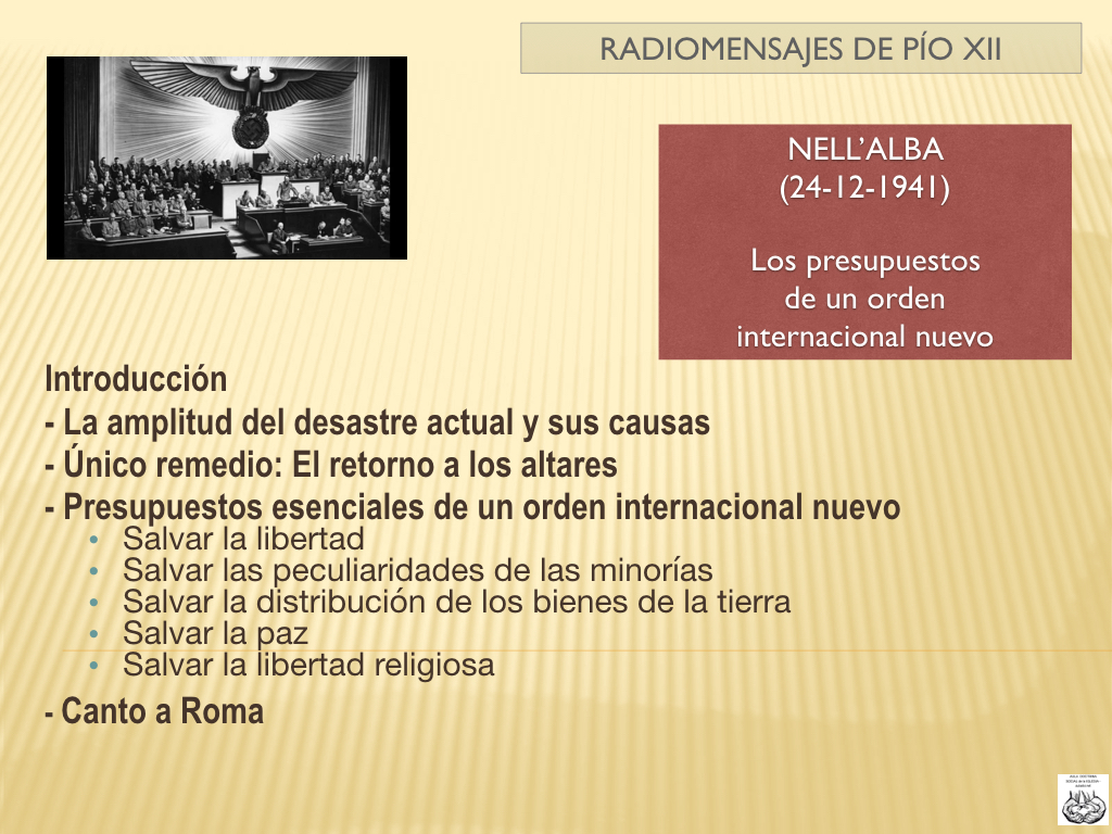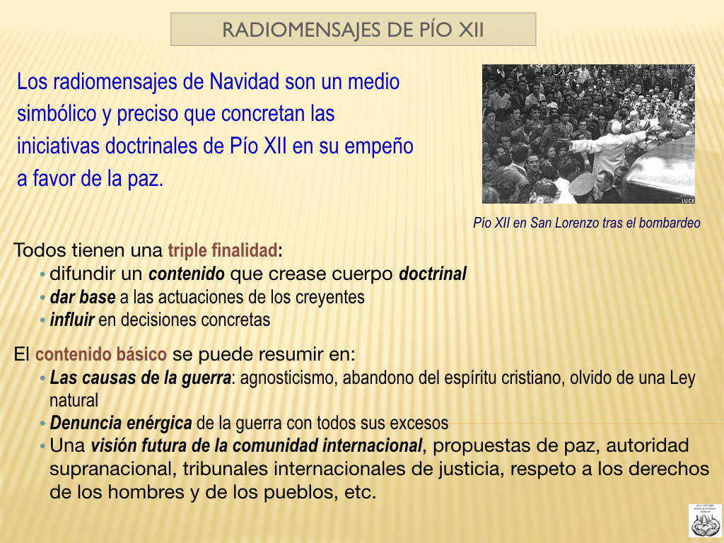 Los radiomensajes de Navidad son un medio simbólico y preciso que concretan las iniciativas doctrinales de Pío XII en su empeño a favor de la paz.