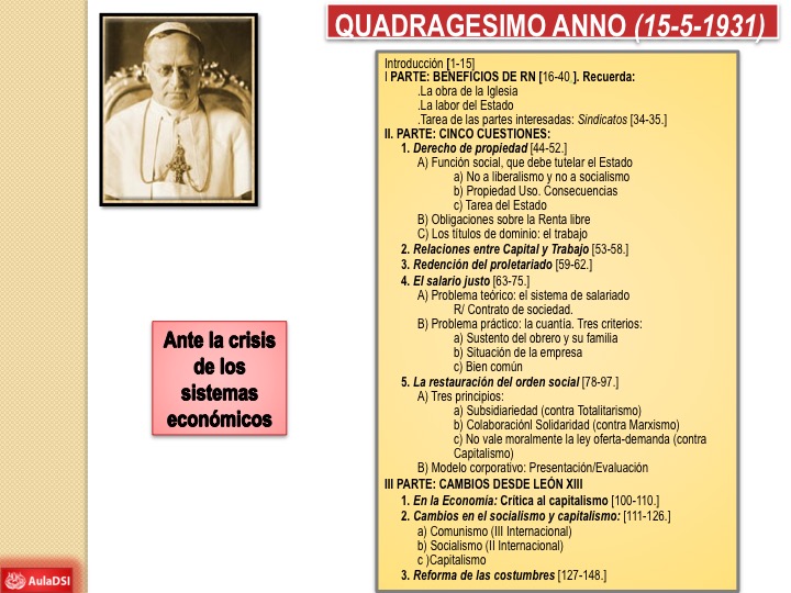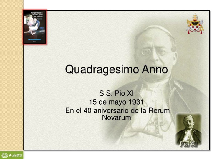 Recorrido histórico de la Doctrina Social de la Iglesia: Encíclica Quadragesimo Anno (15/5/1931) del Papa Pio XI